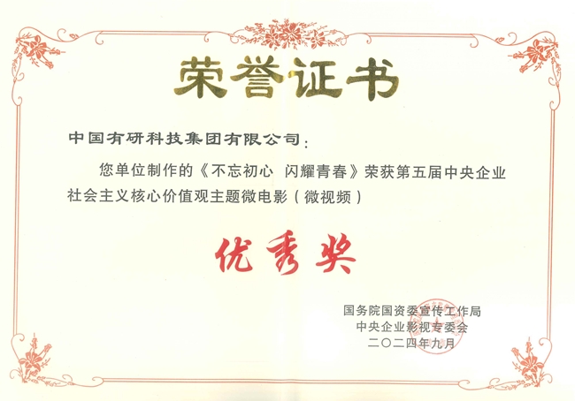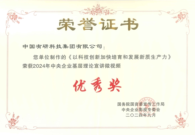 中国有研选送的《不忘初心 闪耀青春》获第五届中央企业社会主义核心价值观主题微电影(微视频)优秀作品,《以科技创新加快培育和发展新质生产力》获2024年中央企业基层理论宣讲100部微视频优秀作品。