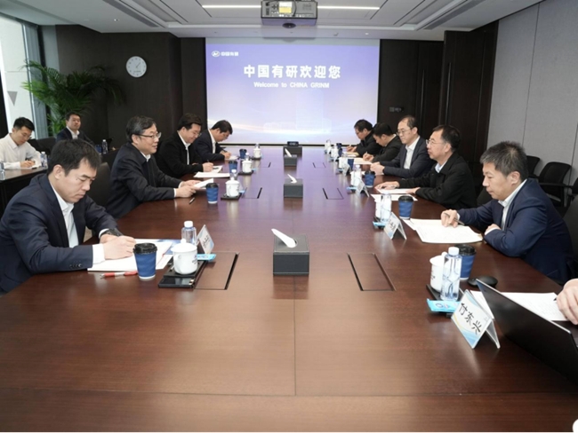 12月12日,中国资源循环集团党委副书记、总经理朱建春率队到访中国有研。中国有研党委书记、董事长赵晓晨,党委委员、总会计师齐书勇接待来访。朱建春一行参观了中国有研展室,详细了解中国有研发展历程、科技创新及产业发展等情况,随后双方进行了座谈交流。